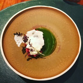 The main meat dish presented us with deer. I think this might be the best cooked deer I’ve ever had. As the meat of this animal is very lean, it can very easily become dry. Ours, however, were melt-in-the-mouth soft, tender and juicy. The blackberry element on the dish was powder, and it was also incorporated in the jus, however we felt it would’ve been nice to have couple of the actual berries on the plate, too. When the dish was served, all the other ingredients were hiding inside a king lettuce parcel. When you revealed what was inside the sight filled you with joy. Again, this dish, too, had something that was too salty. On this dish it was the mushroom purée.