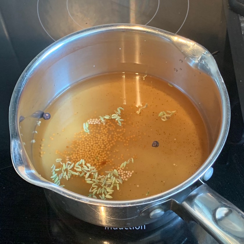Grilled mackerel with wasabi potato mash, cooked beetroot and pickled cucumber and radish