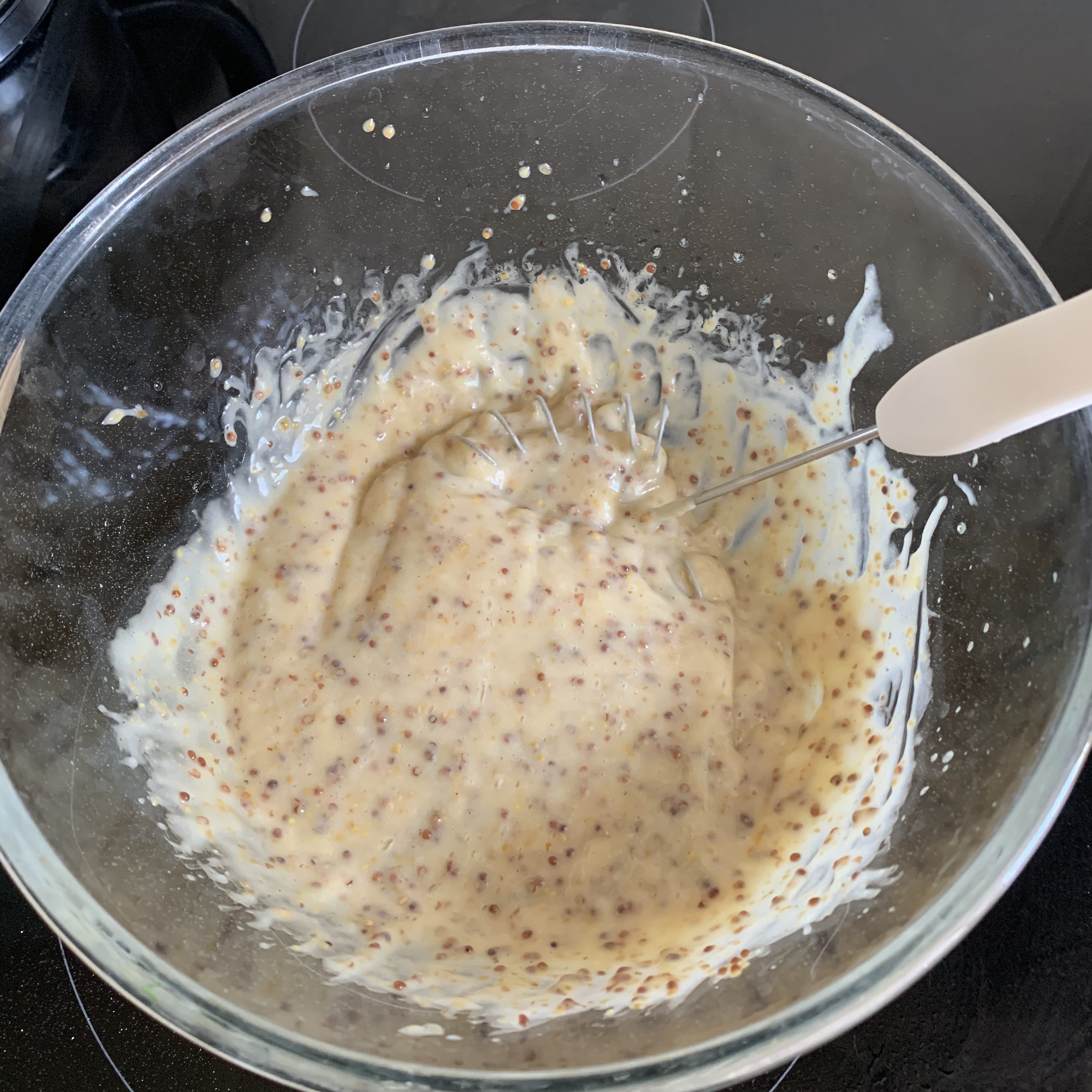 Grilled mackerel with wasabi potato mash, cooked beetroot and pickled cucumber and radish