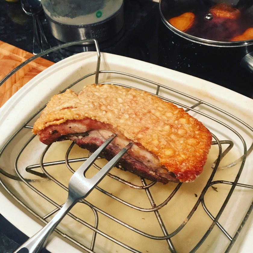 Salt crust baked crispy skin pork belly
