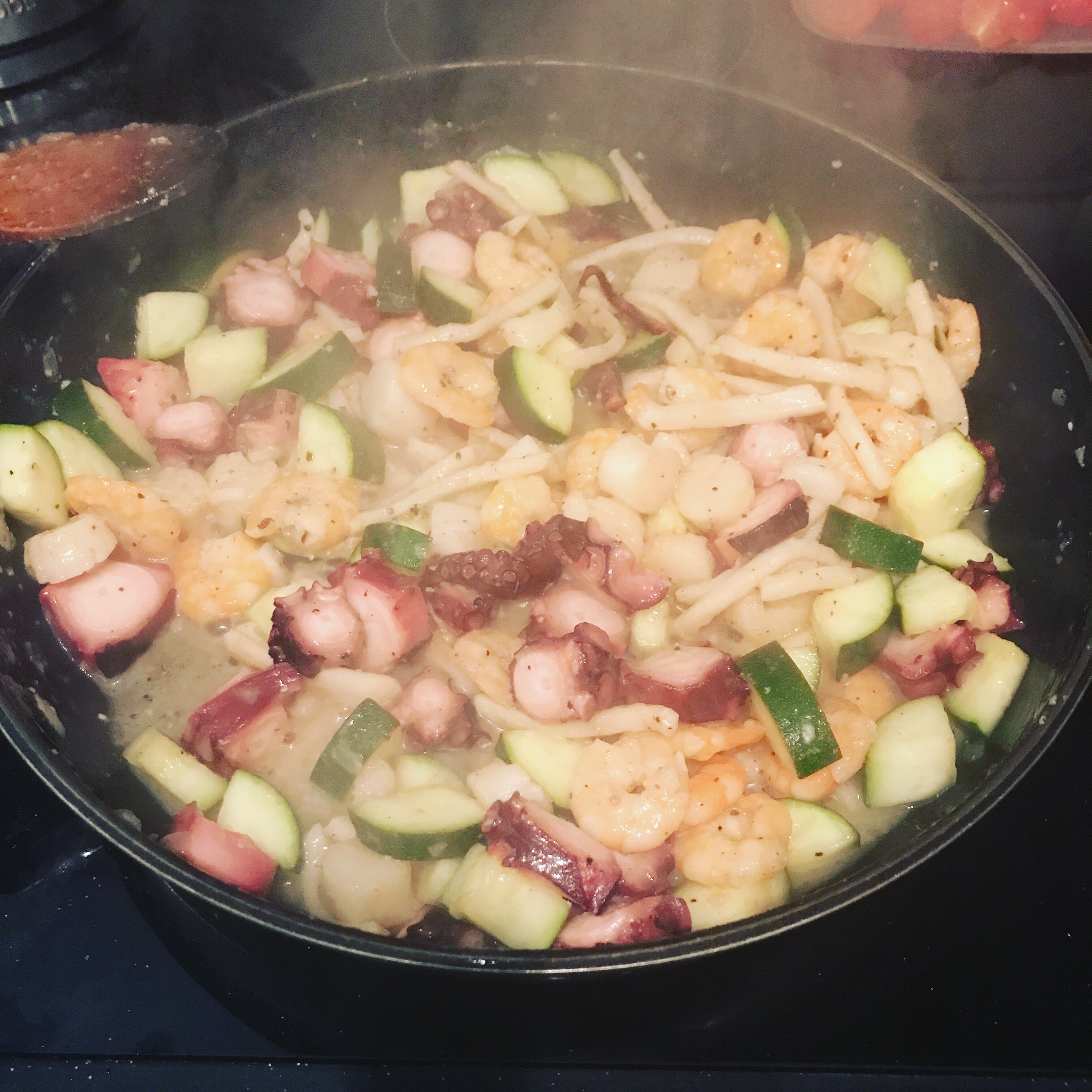 Cauliflower and pomegranate ‘couscous’ with octopus