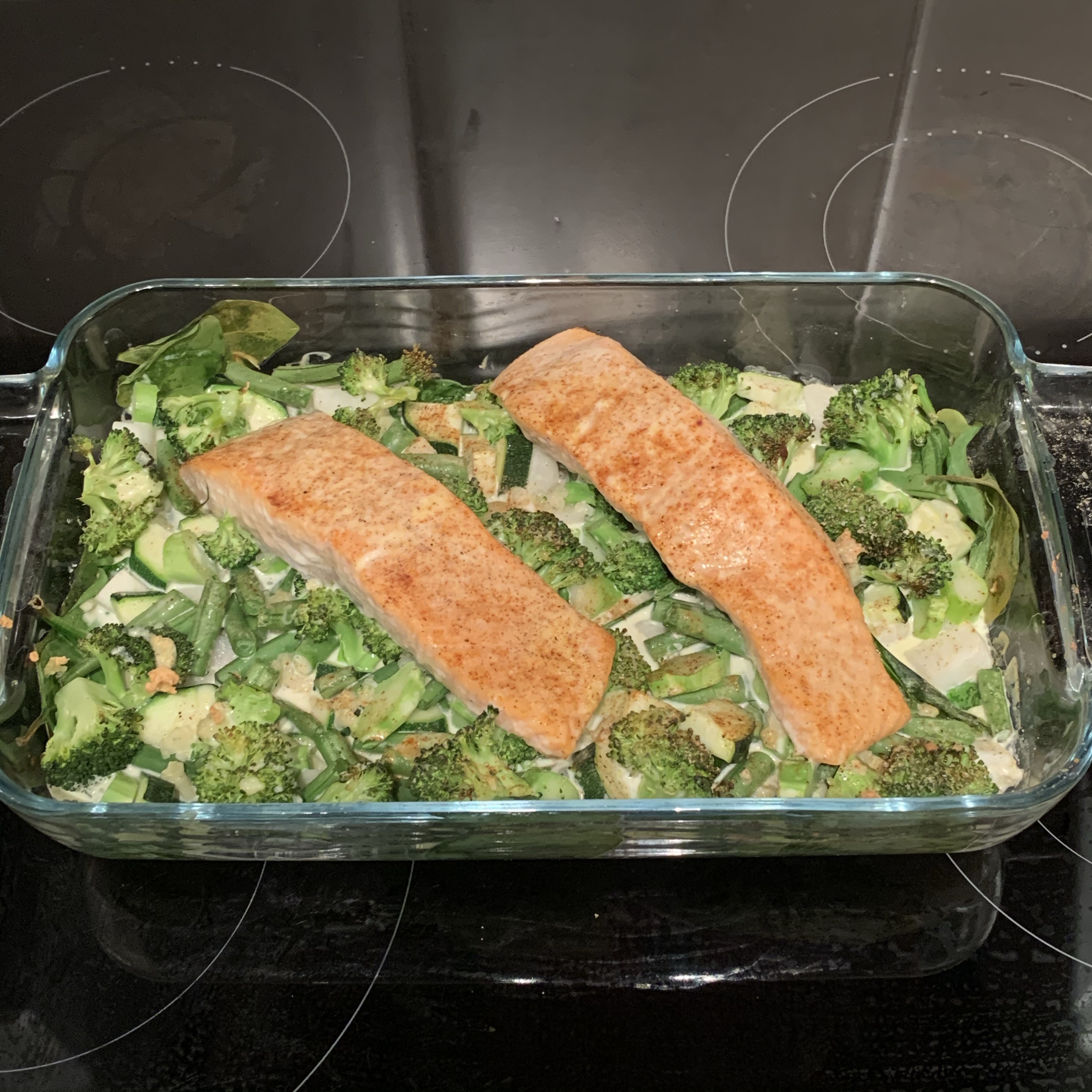 Grilled mackerel with wasabi potato mash, cooked beetroot and pickled cucumber and radish