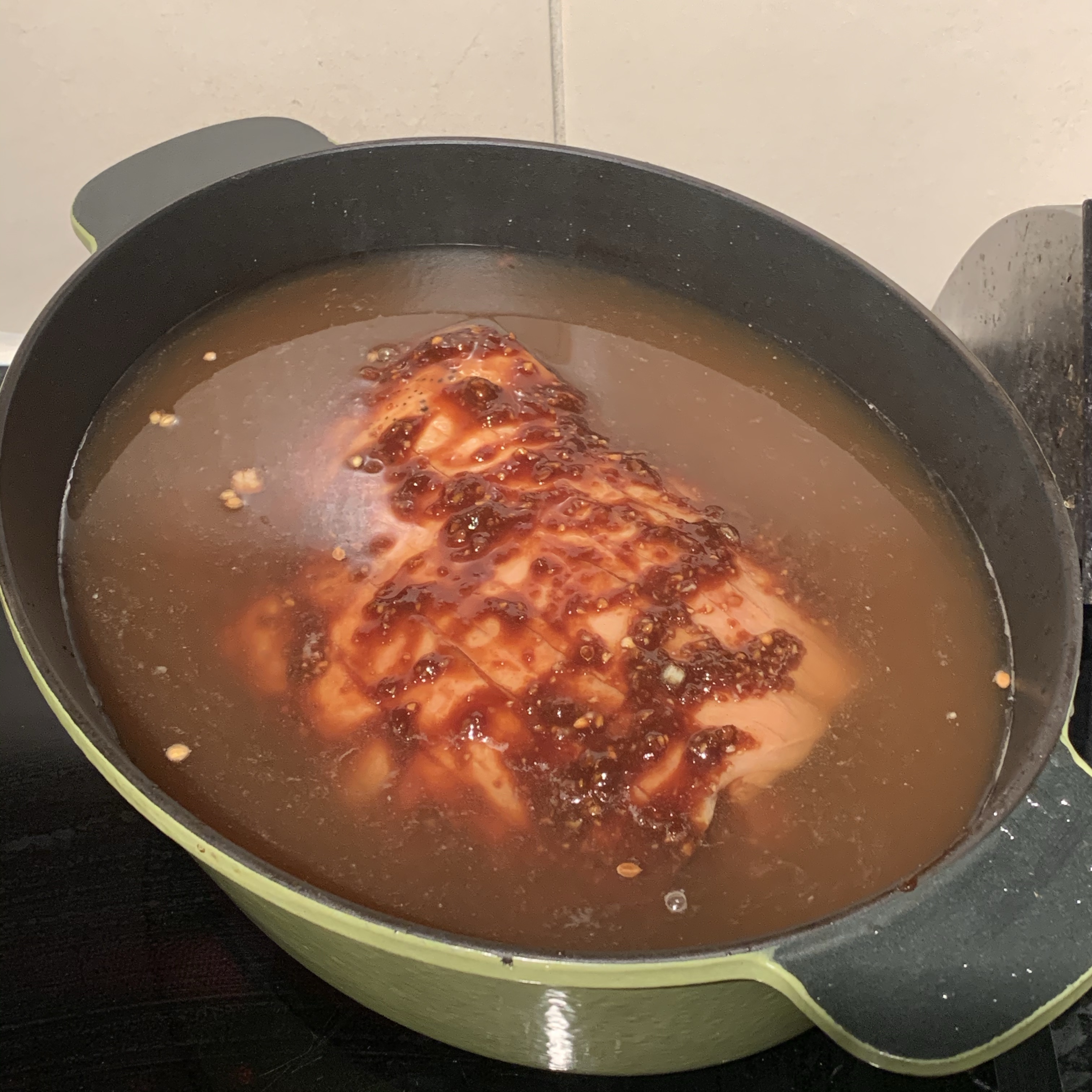 Pan seared, oven roasted duck breast with garlic potato mash and roasted beetroot