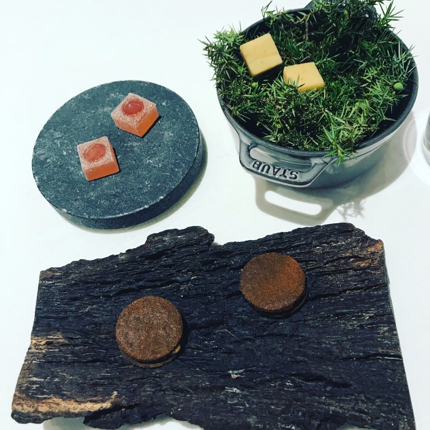 Grilled mackerel with wasabi potato mash, cooked beetroot and pickled cucumber and radish
