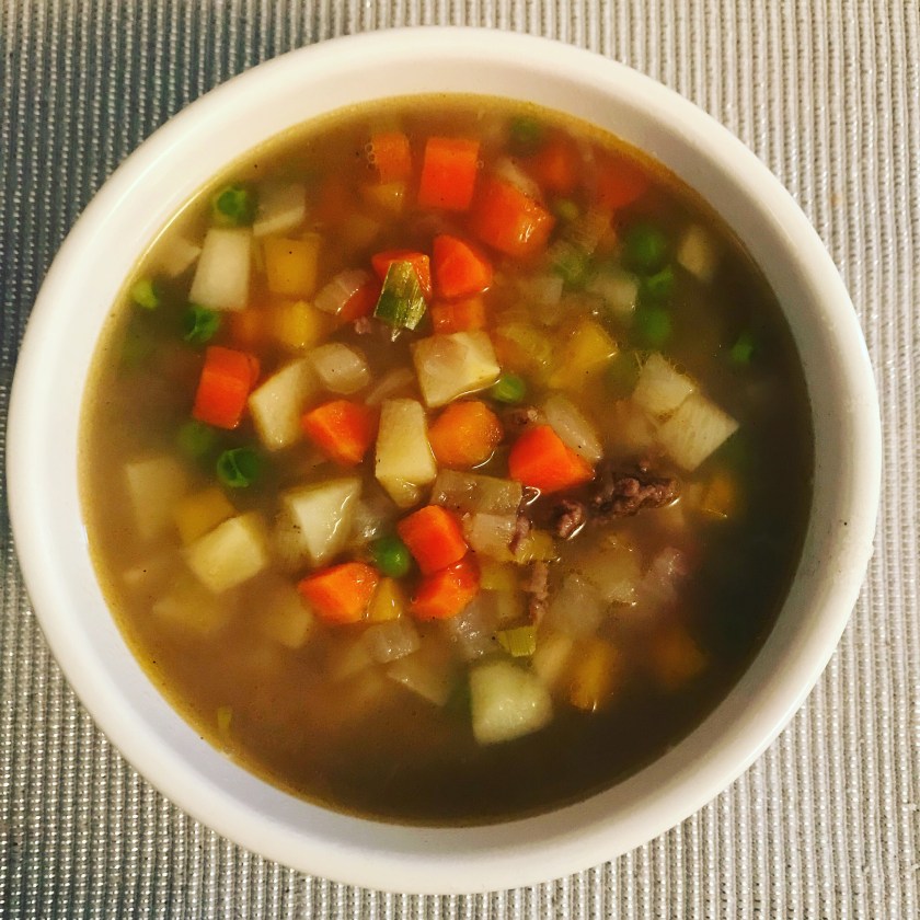 Winter warmer beef and root vegetable soup