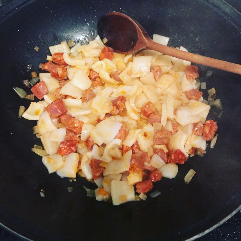 Spaghetti with squid and chorizo