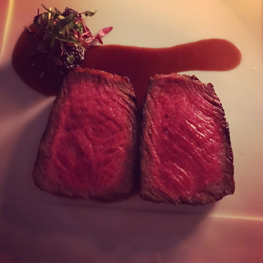 Pan seared, oven roasted duck breast with garlic potato mash and roasted beetroot