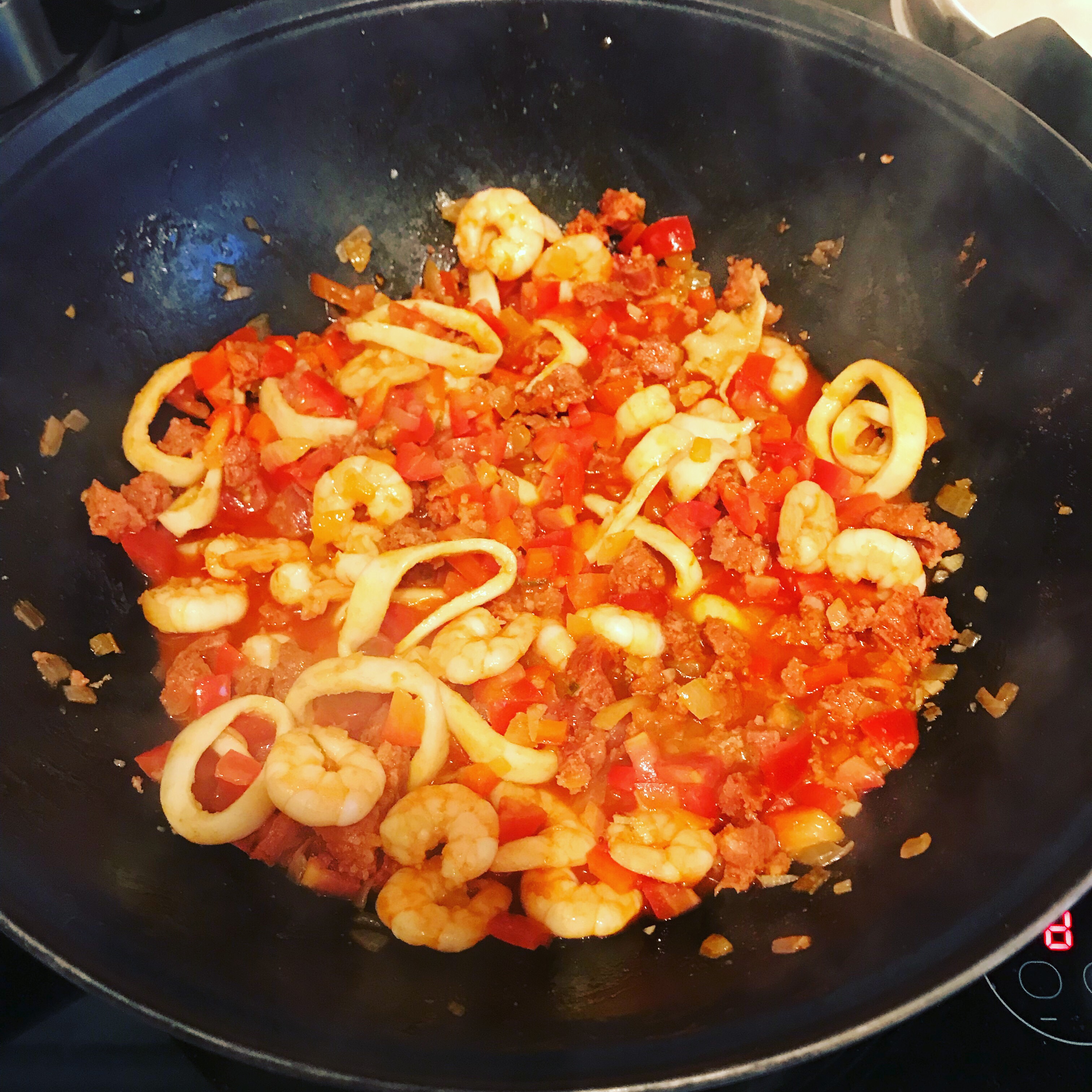 Seafood and chorizo paella