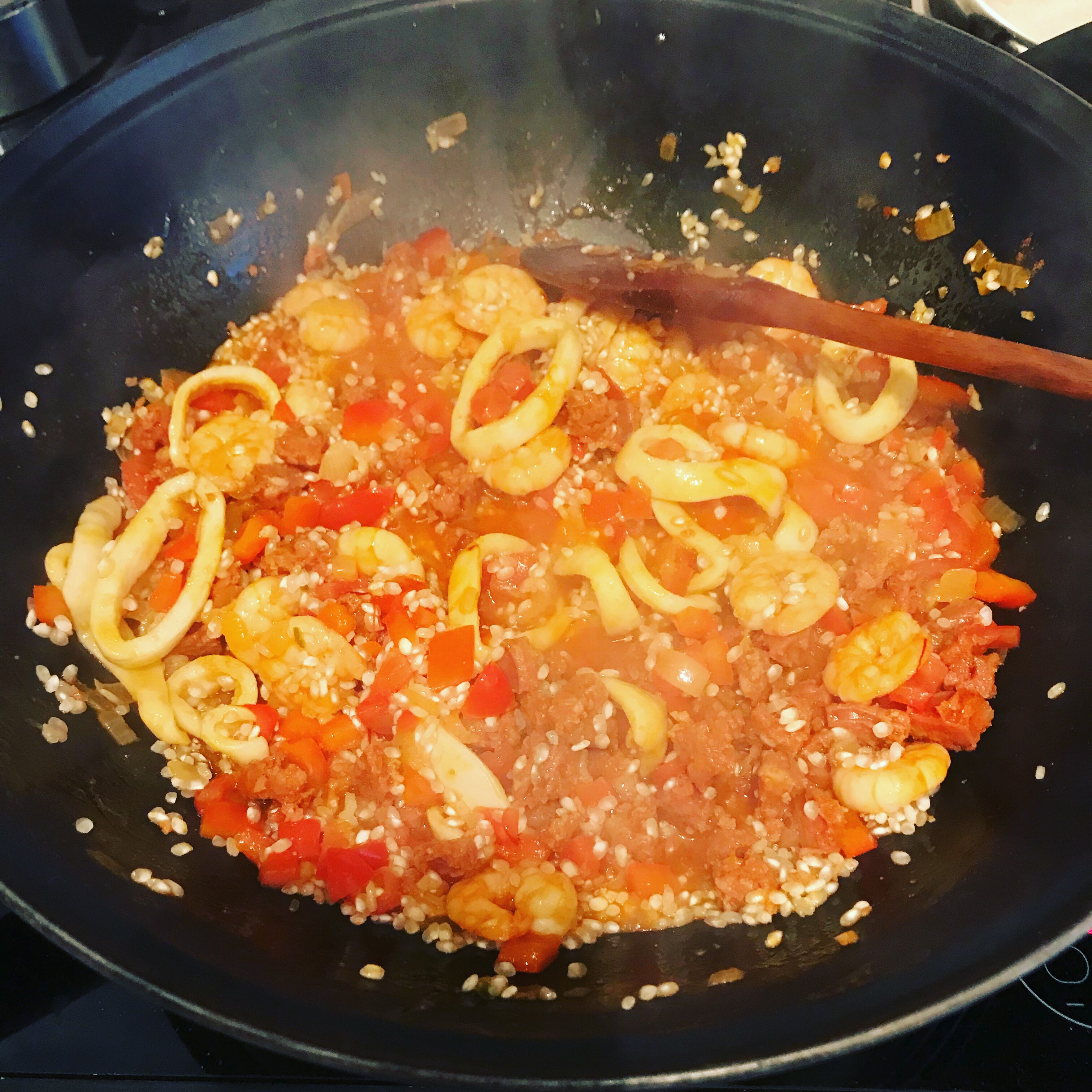 Seafood and chorizo paella