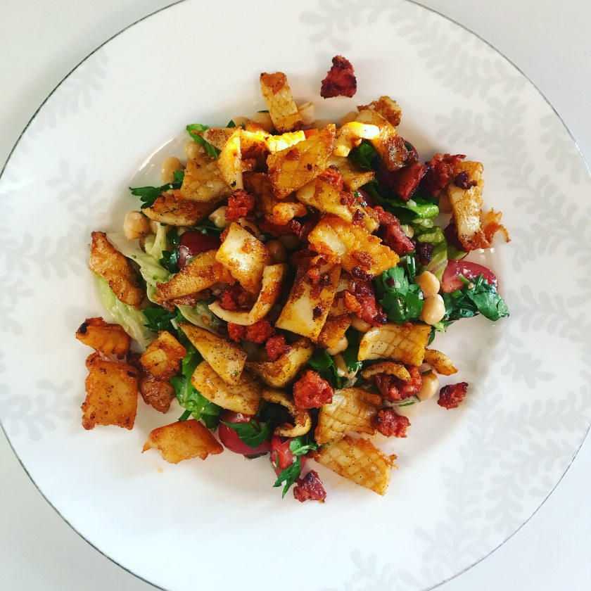 Spaghetti with squid and chorizo