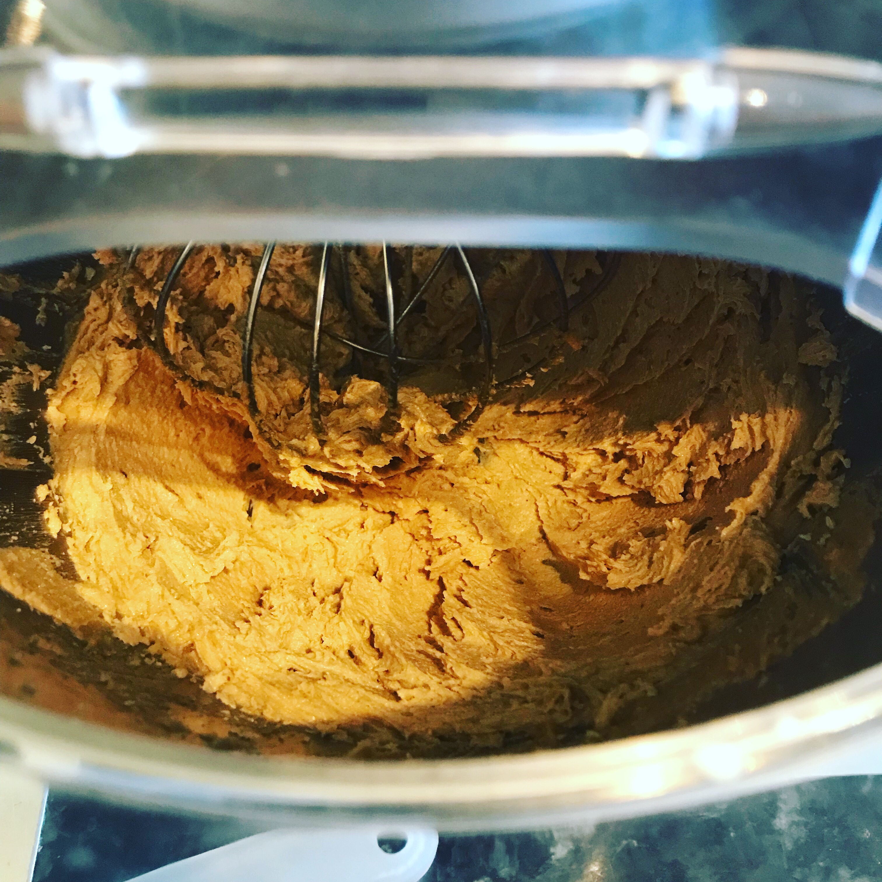 6. Once the cake base has cooled, melt the butter and add the vanilla essence and coffee.